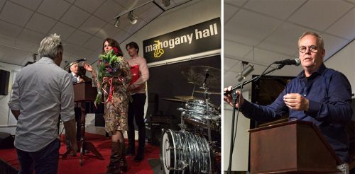Arjon Hollanders dankt de organisatoren en Ruud Vlasbloem opende de expositie’